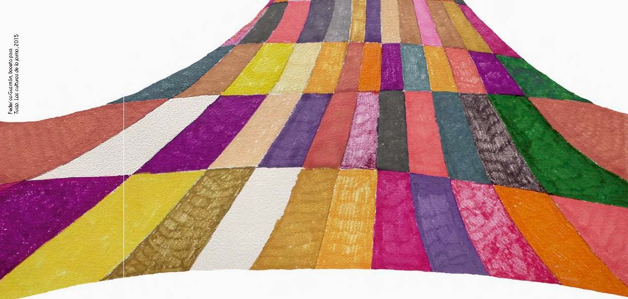 Durante más de siete años Federico Guzmán ha estado vinculado al Sáhara, compartiendo experiencias con la gente y la cultura oriunda. Como parte y consecuencia de esta vivencia personal, el artista ha concebido este proyecto para el Palacio de Cristal, en el que ha levantado una gran jaima que dialoga con el espacio del edificio histórico. En el hogar tradicional de los nómadas del desierto, el techo de esta gran construcción textil se conforma a partir de benias, un tejido acrílico fino, aunque resistente y siempre decorado con motivos geométricos multicolores. Sin embargo, en este caso, el artista ha sustituido las habituales benias de los laterales por melhfas (las ya mencionadas vestimentas femeninas saharauis). Las propias mujeres del campamento de refugiados de Bojador diseñaron y tiñeron las telas para este proyecto específico en un taller organizado por el artista. El resultado final es una gran pintura traslúcida, acompañada de alfombras, cojines y asientos forrados de brocado, que en su conjunto crean un espacio de descanso y reunión para los visitantes. Una plataforma donde se activan cada día diferentes acontecimientos.