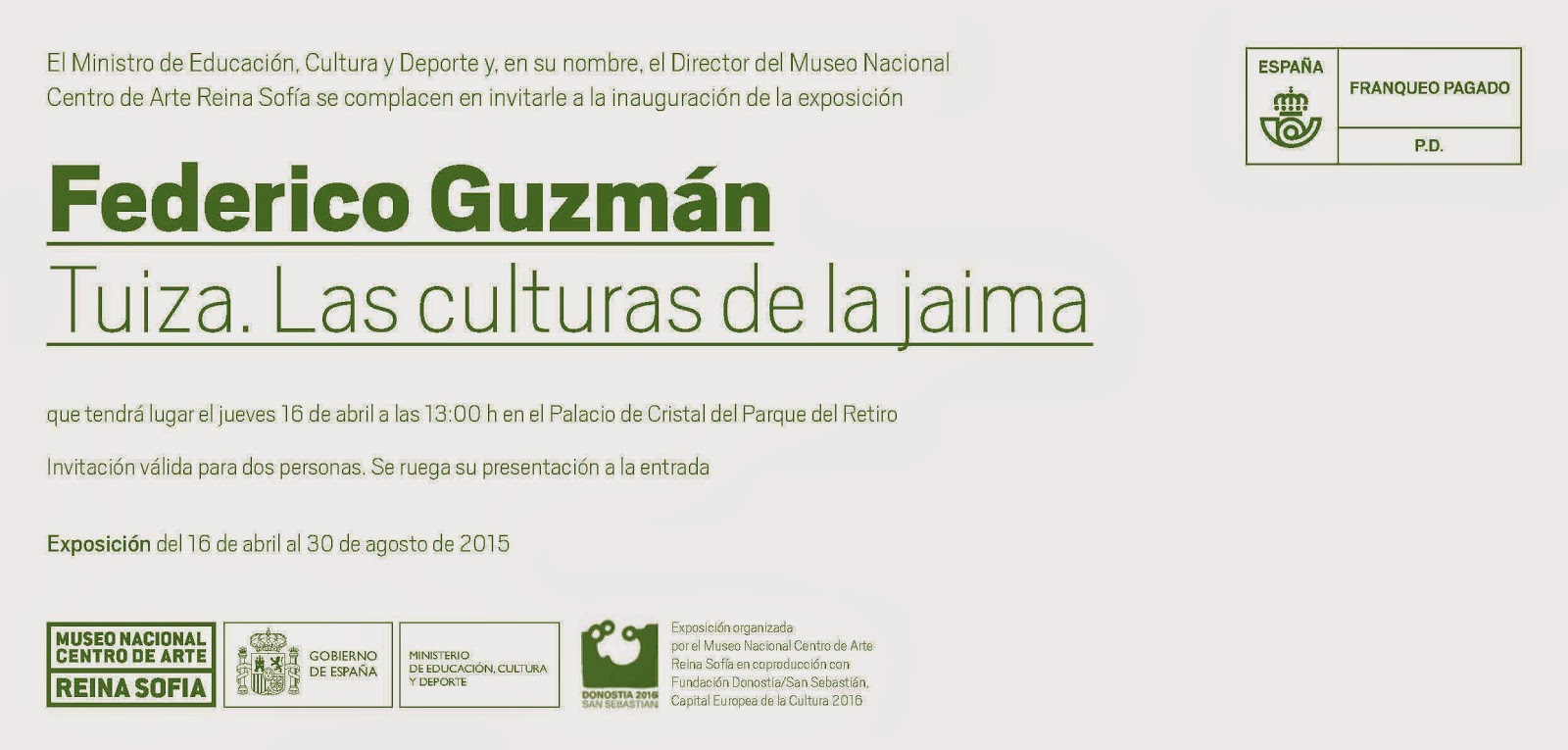 Inauguración Exposición Tuiza. Las culturas de la Jaima, de Federico Guzmán (16 de abril, 13,00h. Palacio de Cristal del Parque del Retiro, Madrid)